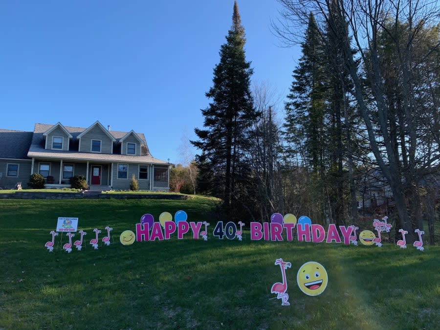 This Durham Yard Greeting rental sign is great for any age or occasion. Whether it's an Over the Hill surprise, Happy Birthday, or any special occasion you'd like to celebrate, these pink birds are sure to brighten anyone's day!